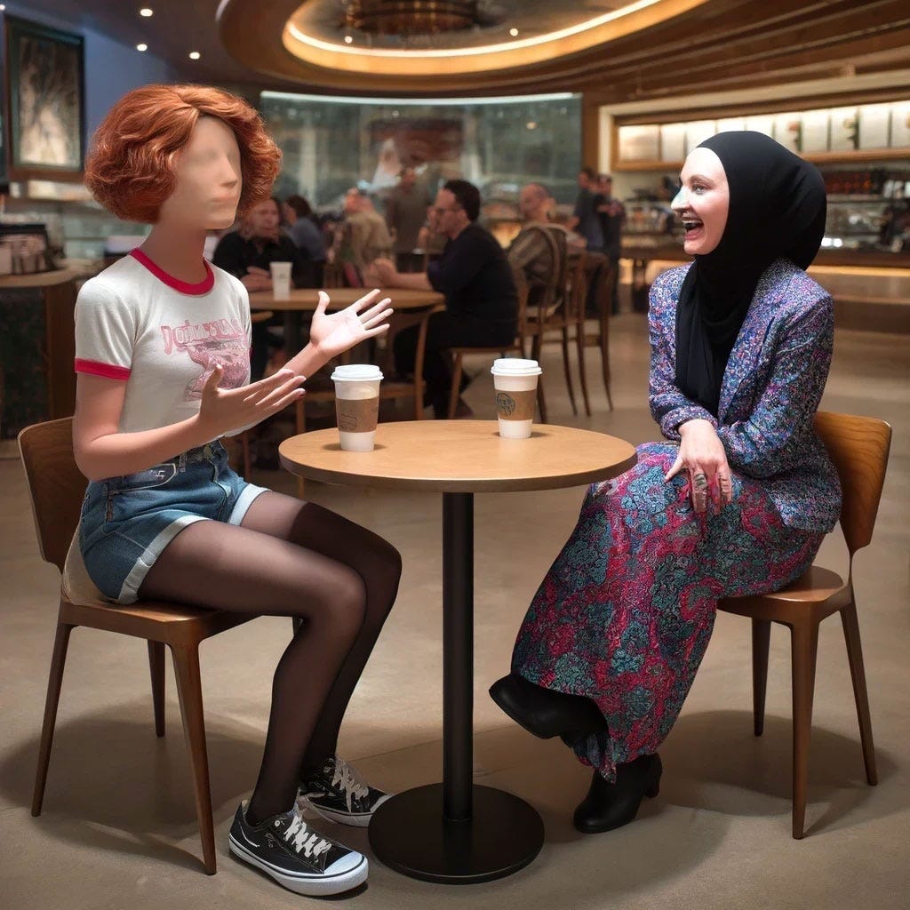 “Hey, Fatima... do you think wearing a hijab might help me blend in more? When I’m out in public, I mean.”